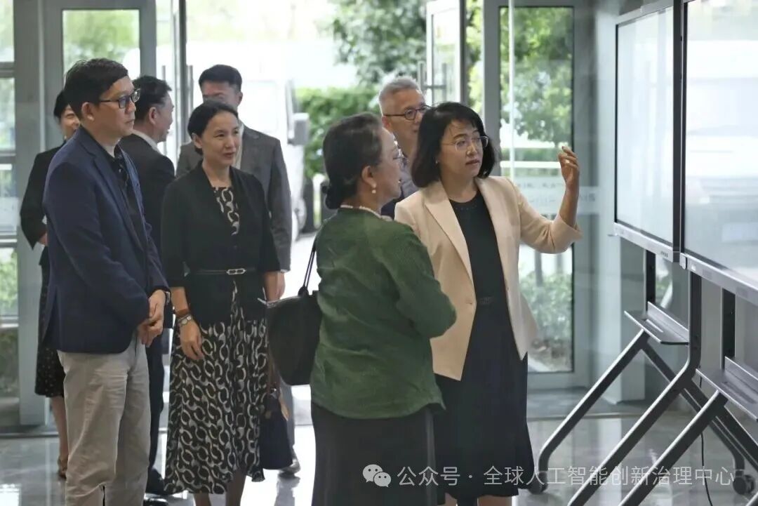 在发展研究院,吉尔一行和阿里沙赫巴纳一行考察了全球人工智能创新治理中心建设情况,与中心专家座谈,参观复旦大学人工智能发展与治理成果展示。